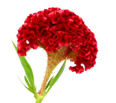 Cockscomb flowers are also known as Wool Flowers or Brain Celosia, suggestive of a highly colored brain. Cockscomb blooms with a compacted crested head 2-5 inches across. The flower's name is suggestive of a rooster's comb due to it's unique appearance and similarity.