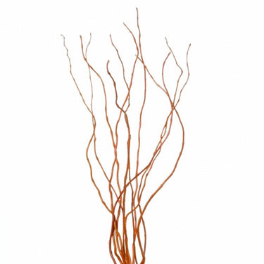 A grouping of the tips of willow branches, hence "Curly Willow Tips". These tips are often a tan to medium brown depending on where they are harvested and typically are about 3 feet in length. If left in water for a long period of time, they may start to grow leaves as they are the live variety, not dried.