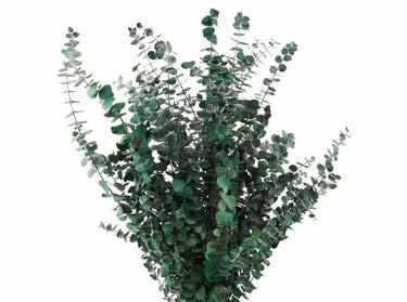 Spiral Eucalyptus, also referred to as "Baby Blue Eucalyptus", varies in length from roughly 18 inches to about 30 inches depending on where it is in season. It is quite different from the Seeded and Silver Dollar varieties in that it is more of a single stalk without laterals branching off of it. The leaves grow directly around the main stem and create a "spiral" or corkscrew appearance.